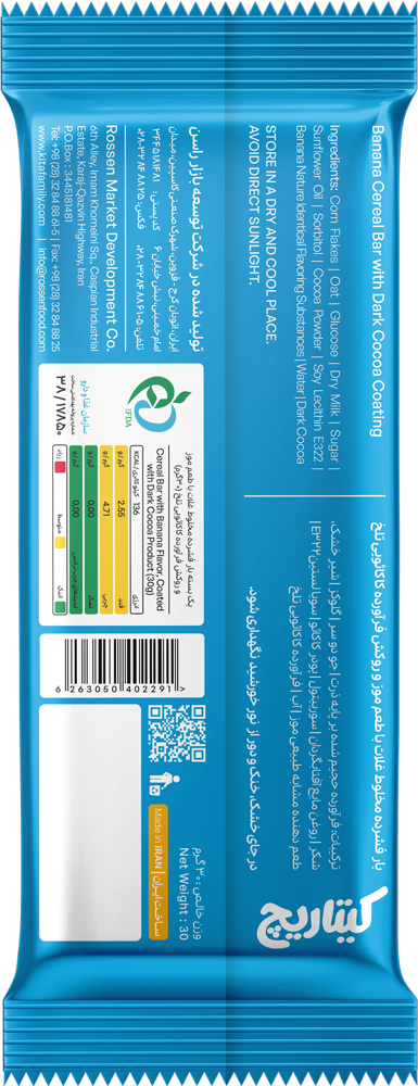 پرک ذرت، شیر خشک، پودر کاکائو، طعم دهنده مشابه طبیعی موز، فرآورده کاکائویی تلخ
