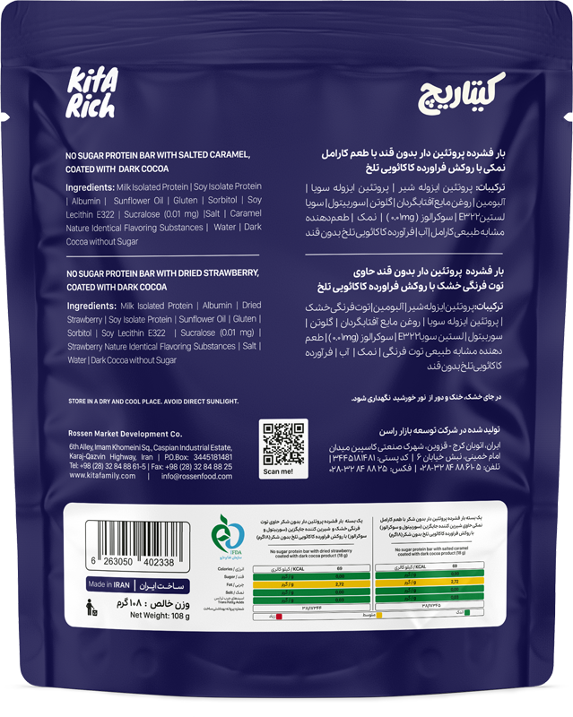 Milk Isolated Protein, Albumin, Dried Strawberry, Soy Isolated Protein, Sunflower Oil, Gluten, Sorbitol, Soya Lecithin E322, Sucralose (0.01mg), Strawberry Nature Identital Flavoring Substances, Salt, Water, Dark Cocoa without Sugar